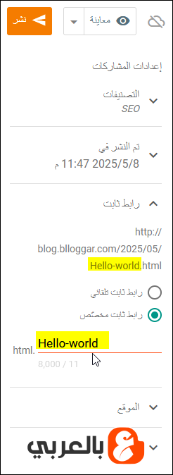 العنوان المخصص هو عنوان رابط الموقع أن يكون له معنى وله صلة بالمحتوى